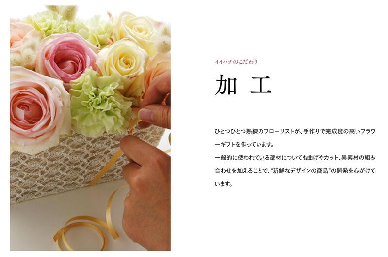 イイハナ・ドットコムの商品は、熟練のフローリストが、ひとつひとつ手作りしています。