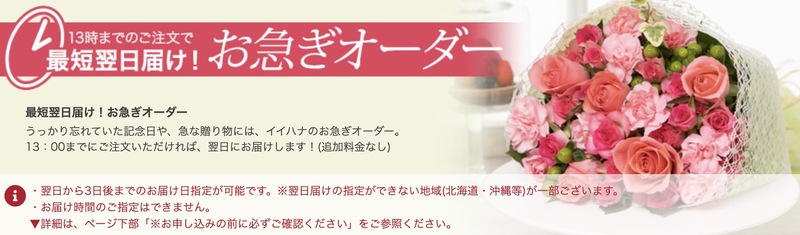 お急ぎの場合は、イイハナ・ドットコムをチェックしましょう。
