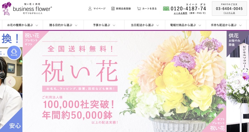 オーキッドファンは胡蝶蘭専門店ですが、ビジネスフラワーはお祝花とお悔み花の専門店です。