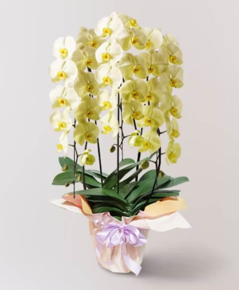 四十九日を過ぎれば白以外の花を贈ってもマナー違反にはなりません。気持ちを明るくする、黄色の胡蝶蘭を贈るといいでしょう。