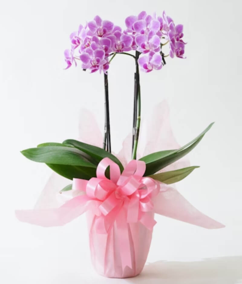 胡蝶蘭というと大きな花のイメージがありますが、小ぶりの花がたくさん咲くミニサイズの胡蝶蘭も上品で可愛らしく、贈り物に最適です。持ち帰りやすく、自宅にも飾りやすいところも喜ばれるでしょう。