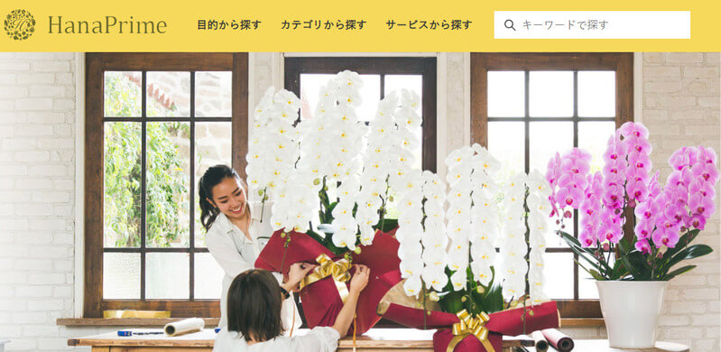 Hana Lista は20年の実績がある、贈答用花の専門店です。今までに9万件以上を取り扱っており、胡蝶蘭のほかに花束や化粧蘭、観葉植物などもそろえています。