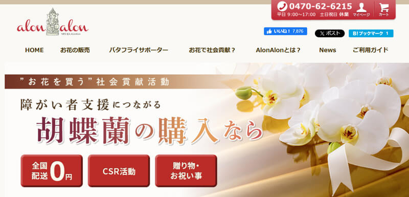 | 特徴 | ・全国の上級生産者より厳選した高品質な胡蝶蘭を通常より安く購入できる ・リピート率90%以上 ・一部地域では当日配送が可能 |