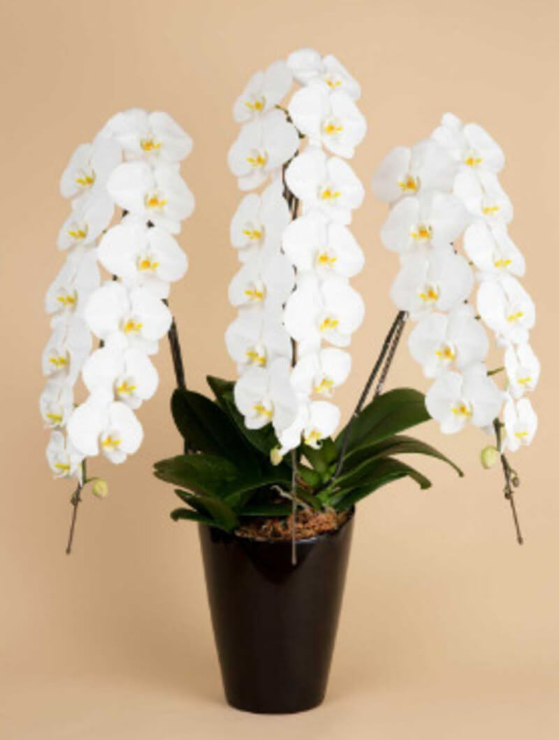 お悔やみで贈るなら『胡蝶蘭園.com』の3本立30輪(白)